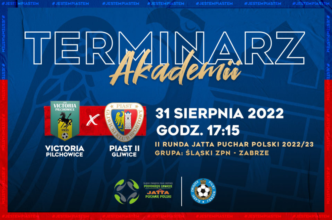 W ostatni dzień sierpnia Piast II Gliwice zagra z Victorią Pilchowice w ramach 2. rundy Jatta Pucharu Polski. Spotkanie pucharowe na szczeblu okręgowym zostanie rozegrane na boisku rywala, w Pilchowicach przy ulicy Sportowej.