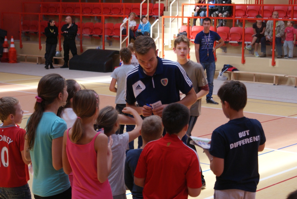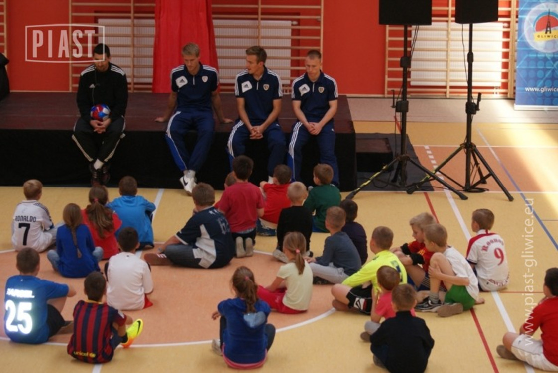 Na sali pojawiło się około pięćdziesięcioro dzieci, które po raz pierwszy w życiu miały możliwość trenowania pod okiem graczy na co dzień występujących w T-Mobile Ekstraklasie. II trener Piasta wraz ze swoimi podopiecznymi pokazywał m.in. jak prawidłowo podawać i przyjmować piłkę oraz odpowiednio układać nogę do strzału. Maluchy bawiły się znakomicie i po treningu dostały szansę zadawania pytań swoim gościom. „Jak można zostać piłkarzem”, „kiedy zaczęliście grać w piłkę”, „wasz najtrudniejszy rywal” – to tylko wybrane pytania, z którymi musieli się zmierzyć piłkarze.
