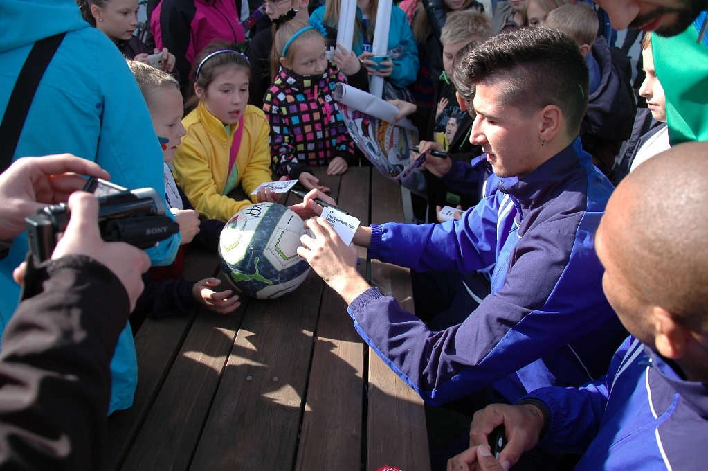 Patrzcie, Ruben" - wyrwało się nagle z ust kilkudziesięciu kibiców, którzy oczekiwali przybycia zawodników Piasta Gliwice. Hiszpańskiemu snajperowi towarzyszyli Rabiola i Collins John. Niebiesko-czerwoni, oblegani przez tłumy dzieciaków, cierpliwie rozdawali autografy i pozowali do wspólnych zdjęć. Jedna z dziewczynek żałowała jedynie, że w gronie piłkarzy zabrakło "oficera" zespołu Tomka Podgórskiego :)