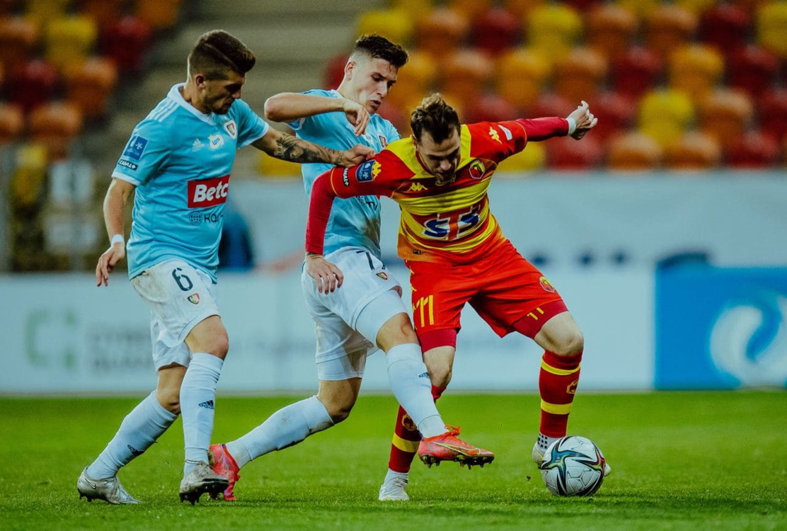 Jagiellonia: Dziekoński - Wdowik (46. Nastić), Tiru, Augustyn - Nalepa (59. Pospisil), Romanczuk, Kwiecień, Prikryl (87. Trubeha), Cernych - Imaz, Żyro (78. Bida).
