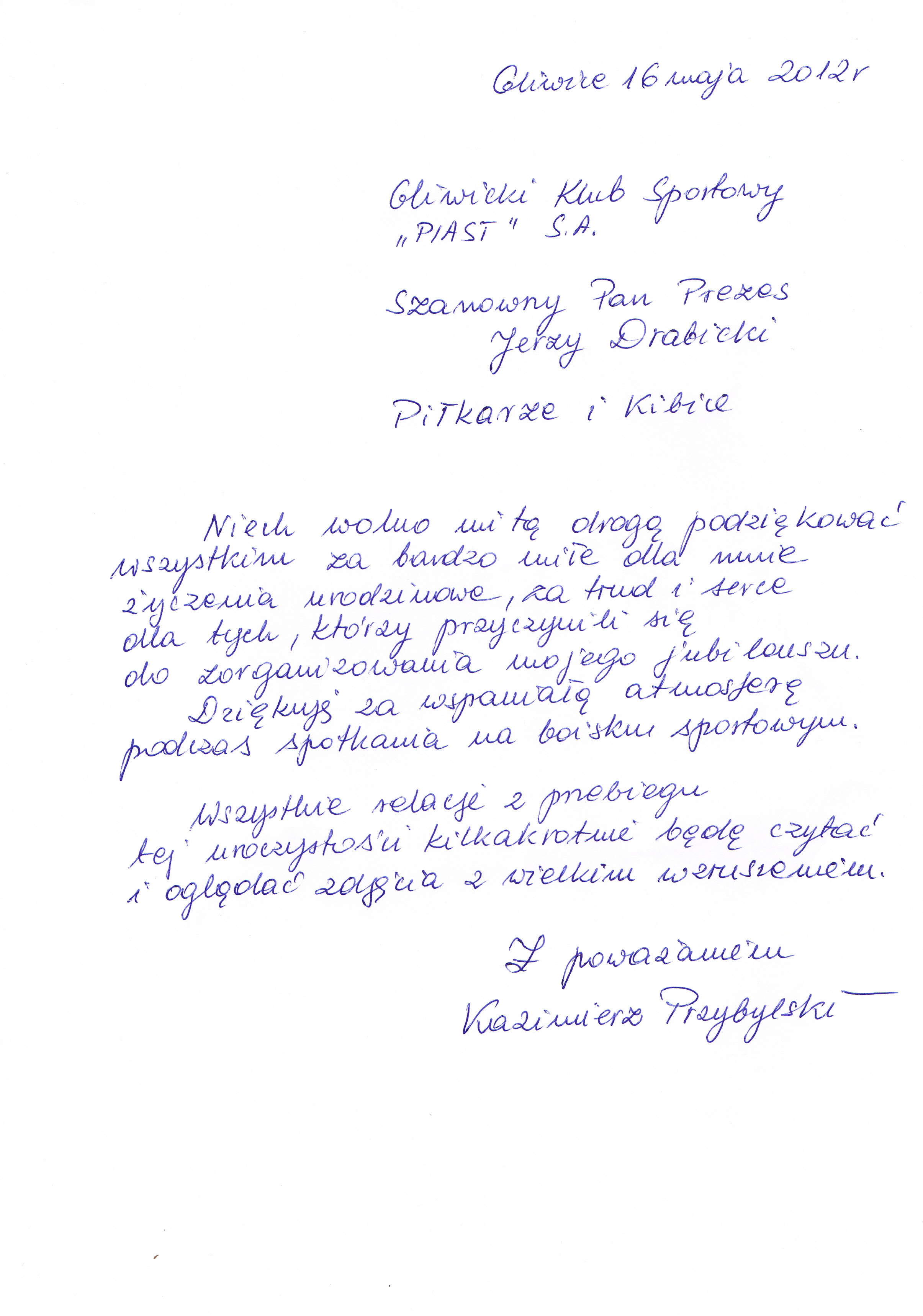 Kazimierz Przybylski dziękuje
