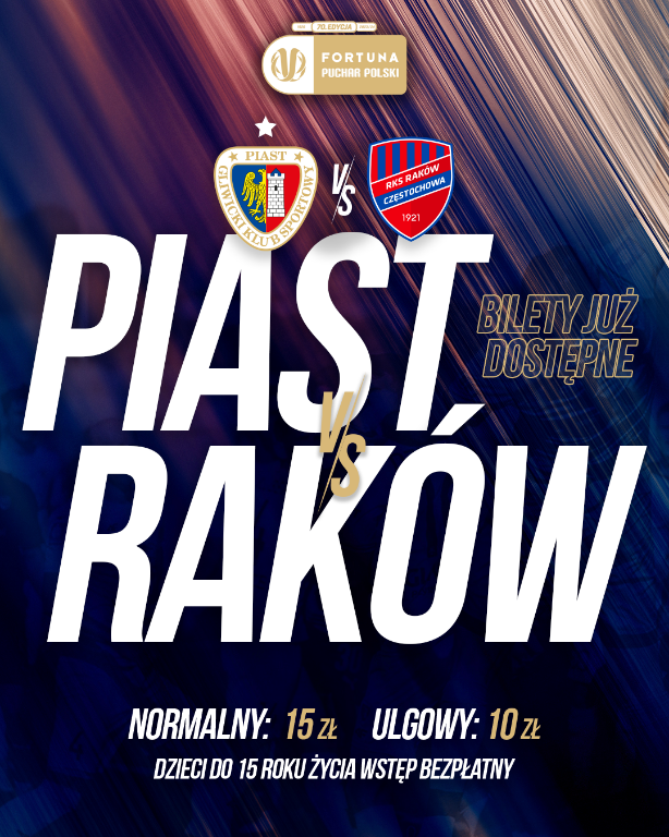 Ćwierćfinałowe starcie Fortuna Pucharu Polski pomiędzy Piastem Gliwice a Rakowem Częstochowa odbędzie się 27 lutego o godzinie 17:30. Podczas losowania wyznaczono, że to Niebiesko-Czerwoni będą gospodarzami tego spotkania.