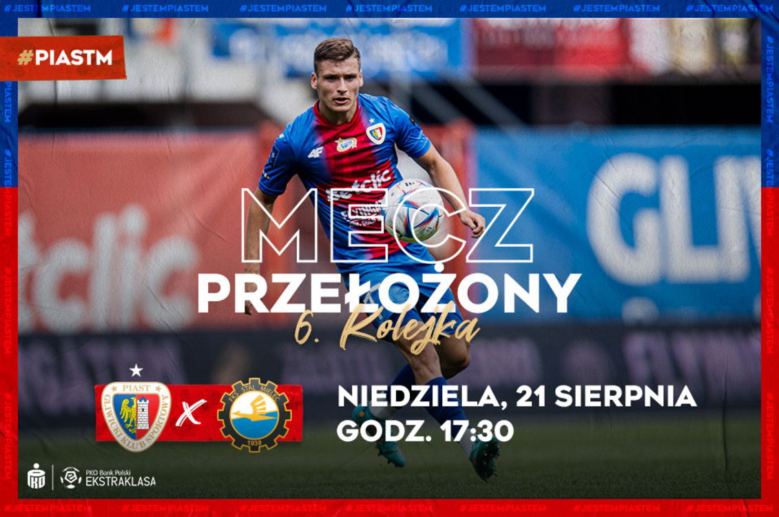 Zgodnie z decyzją Departamentu Logistyki Rozgrywek spotkanie 6. kolejki PKO Bank Polski Ekstraklasy pomiędzy Piastem Gliwice a Stalą Mielec odbędzie się w niedzielę, 21 sierpnia o godzinie 17:30. Przyczyną takiej decyzji jest przełożenie niedzielnych meczów z udziałem zespołów Lecha Poznań i Rakowa Częstochowa, które występują w europejskich pucharach.