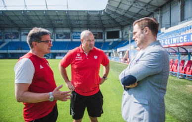 Drużyna narodowa koszykarzy przebywa aktualnie na zgrupowaniu w Gliwicach, gdzie przygotowuje się do turnieju kwalifikacyjnego do Igrzysk Olimpijskich w Tokio 2020. Korzystając z wolnej chwili, trener Mike Taylor skorzystał z zaproszenia Piasta i odwiedził Waldemara Fornalika na Stadionie Miejskim im. Piotra Wieczorka w Gliwicach. Razem z amerykańskim selekcjonerem do Klubu przyjechał koszykarz Aaron Cel, który jest dużym fanem piłki nożnej.