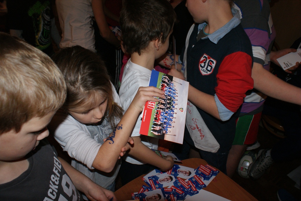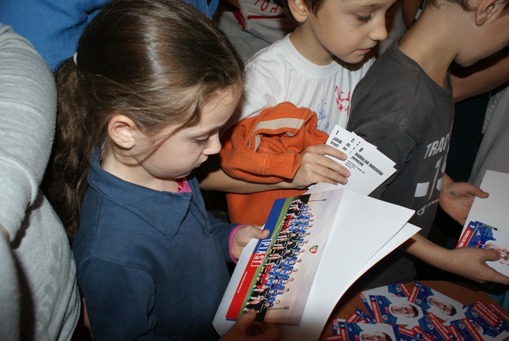Niebiesko-czerwonych przywitała dwudziestoosobowa grupa dzieci, które nie miały najmniejszych problemów z rozpoznaniem czterech reprezentantów klubu z Okrzei. Mali kibice kolejno się przedstawili i po chwili zasypali swoich boiskowcych pupili gradem pytań. Ciekawiło ich, dlaczego wybrali akurat Piasta, czy jest górna granica wieku wykonywania zawodu piłkarza, skąd otrzymują stroje oraz… ile zarabiają.