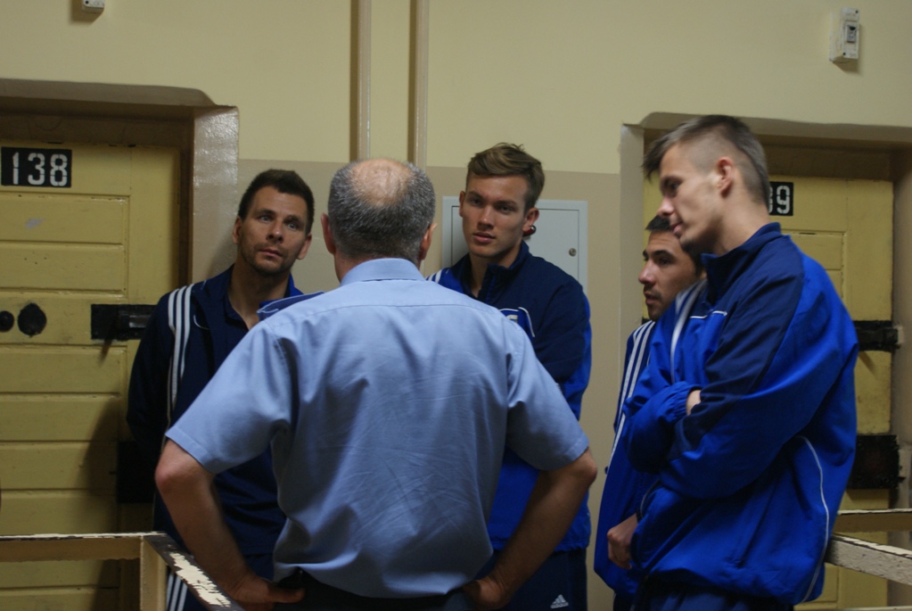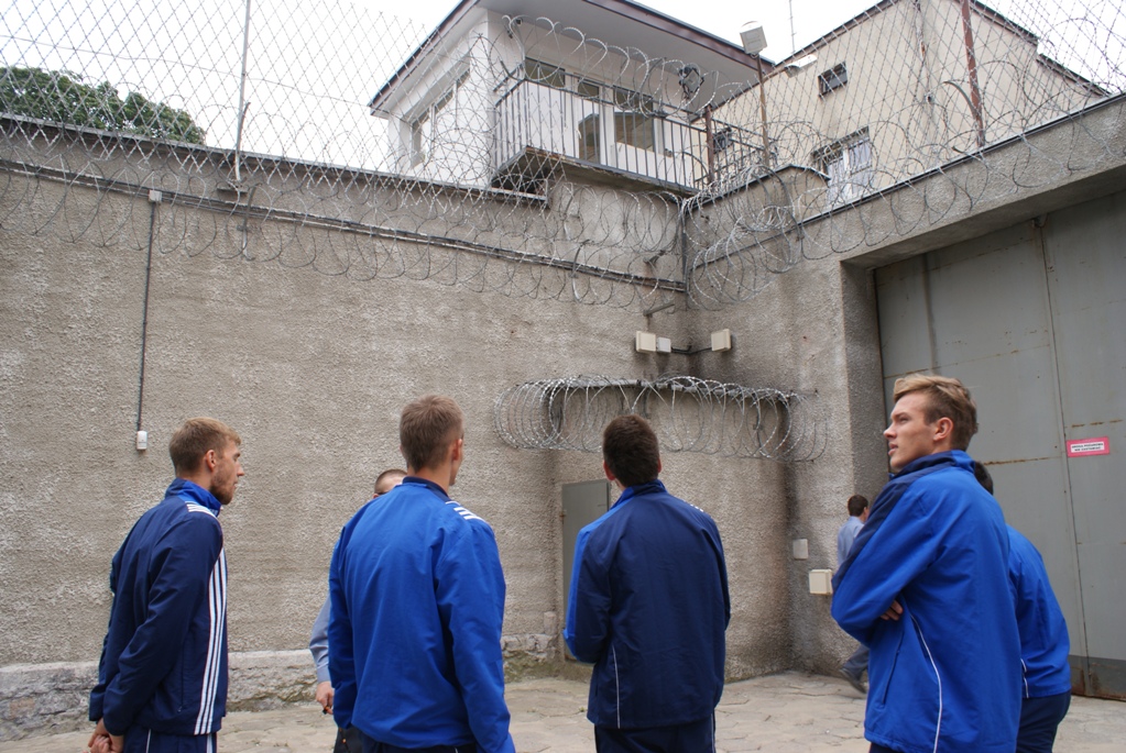 Przedstawiciele niebiesko-czerwonej jedenastki mieli okazję zwiedzić praktycznie cały budynek. Gracze z Okrzei dowiedzieli się na jakich zasadach funkcjonuje areszt, odwiedzili poszczególne bloki i zobaczyli jak wyglądają m.in. cele czy natryski. Wszyscy obecni po raz pierwszy od wewnątrz zapoznali się z warunkami panującymi w ośrodku jednostki penitencjarnej, będąc pod wrażeniem klimatu więziennych murów.