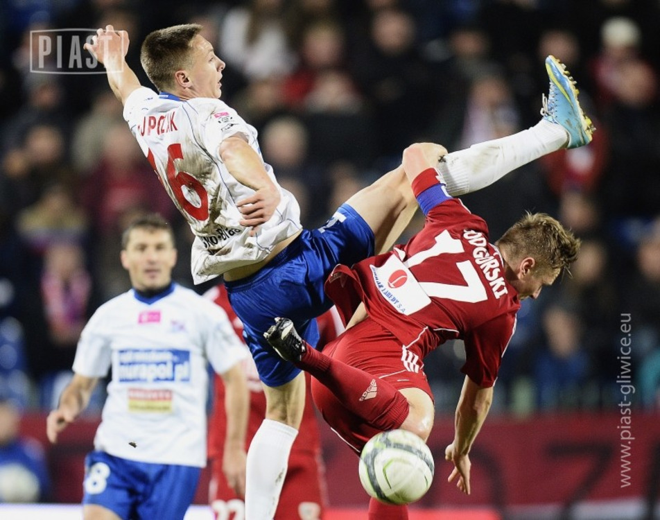 Dobrze w drugą połowę "weszli" gracze z Gliwic. Sędzia na początku pięćdziesiątej minuty odgwizdał rzut wolny sprzed pola karnego. Do futbolówki podszedł Tomasz Podgórski i uderzył na tyle dobrze - a jednocześnie nieszczęśliwie - że piłka trafiła w słupek Ladislava Rybanskiego.