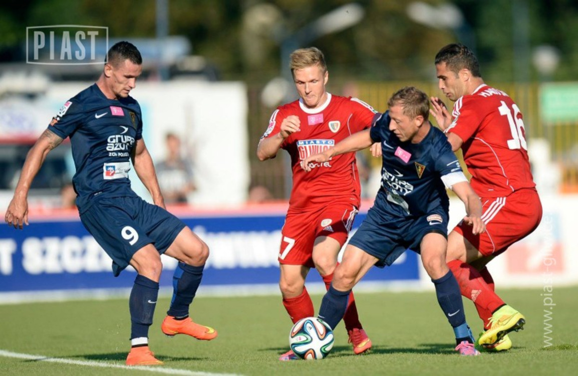 Kapitan Piasta Gliwice - Tomasz Podgórski - zostawił wiele zdrowia na boisku w meczu z Pogonią. Między innymi dzięki temu gliwiczanie wywieźli punkt z trudnego terenu.