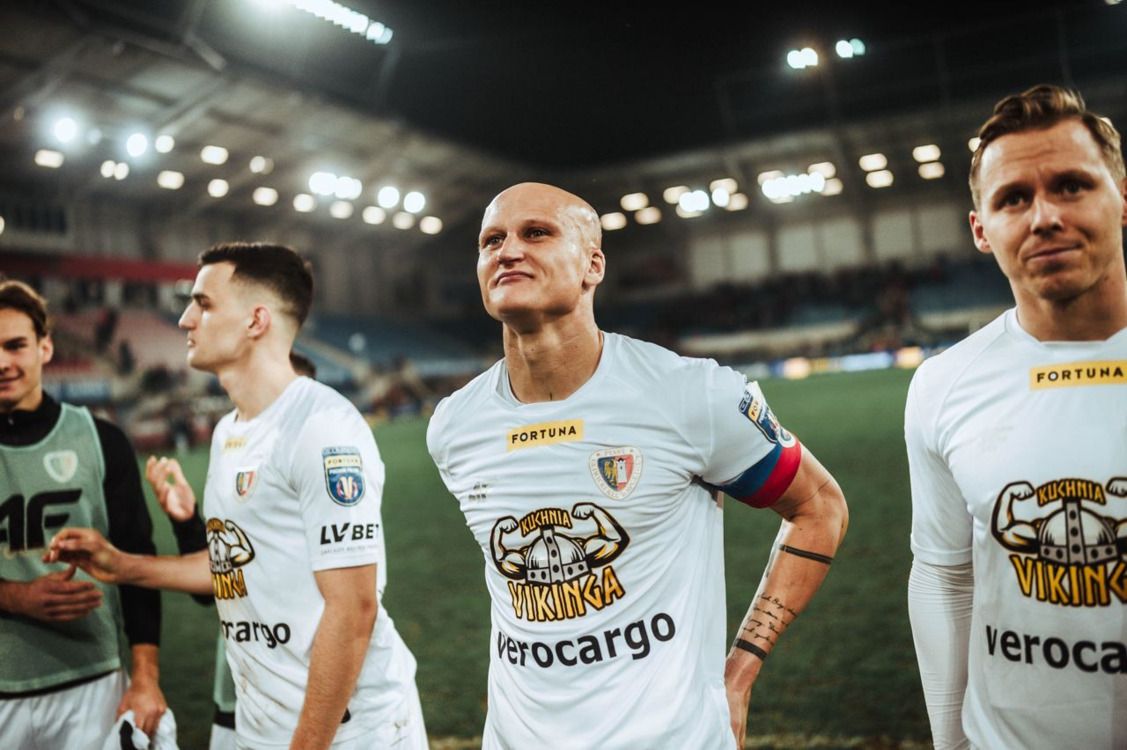 Jakub Czerwiński: "Jesteśmy szczęśliwi. Zrealizowaliśmy plan, który założyliśmy sobie przed meczem. Każdy, kto był na boisku zrealizował go w stu procentach. Z pokorą podchodzimy do tego wyniku i przebiegu spotkania. Taka jest kolej rzeczy i pokonaliśmy mistrza Polski w tej fazie rozgrywek. Możemy śmiało marzyć o czymś więcej, ale teraz najważniejsza jest liga, aby w najbliższych meczach punktować".