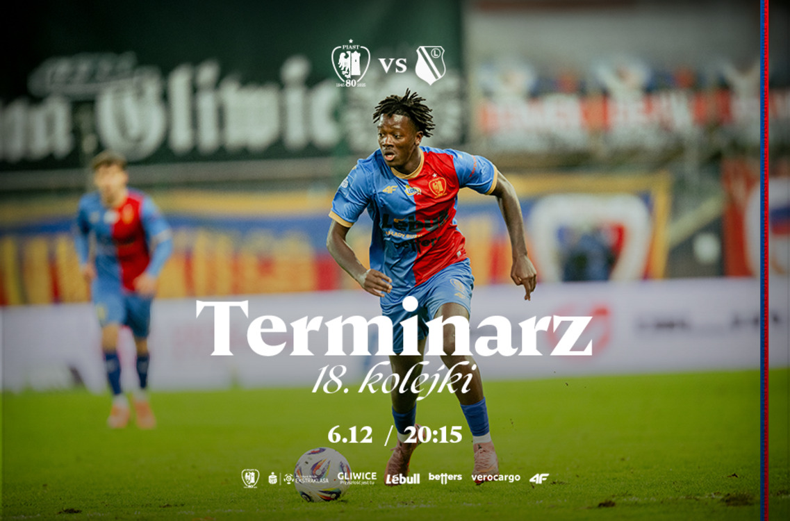Poznaliśmy terminarz 18. kolejki PKO Bank Polskie Ekstraklasy, w której Piast Gliwice zagra na własnym stadionie z Legią Warszawa. To spotkanie zostało zaplanowane na sobotę, 6 grudnia na godzinę 20:15.