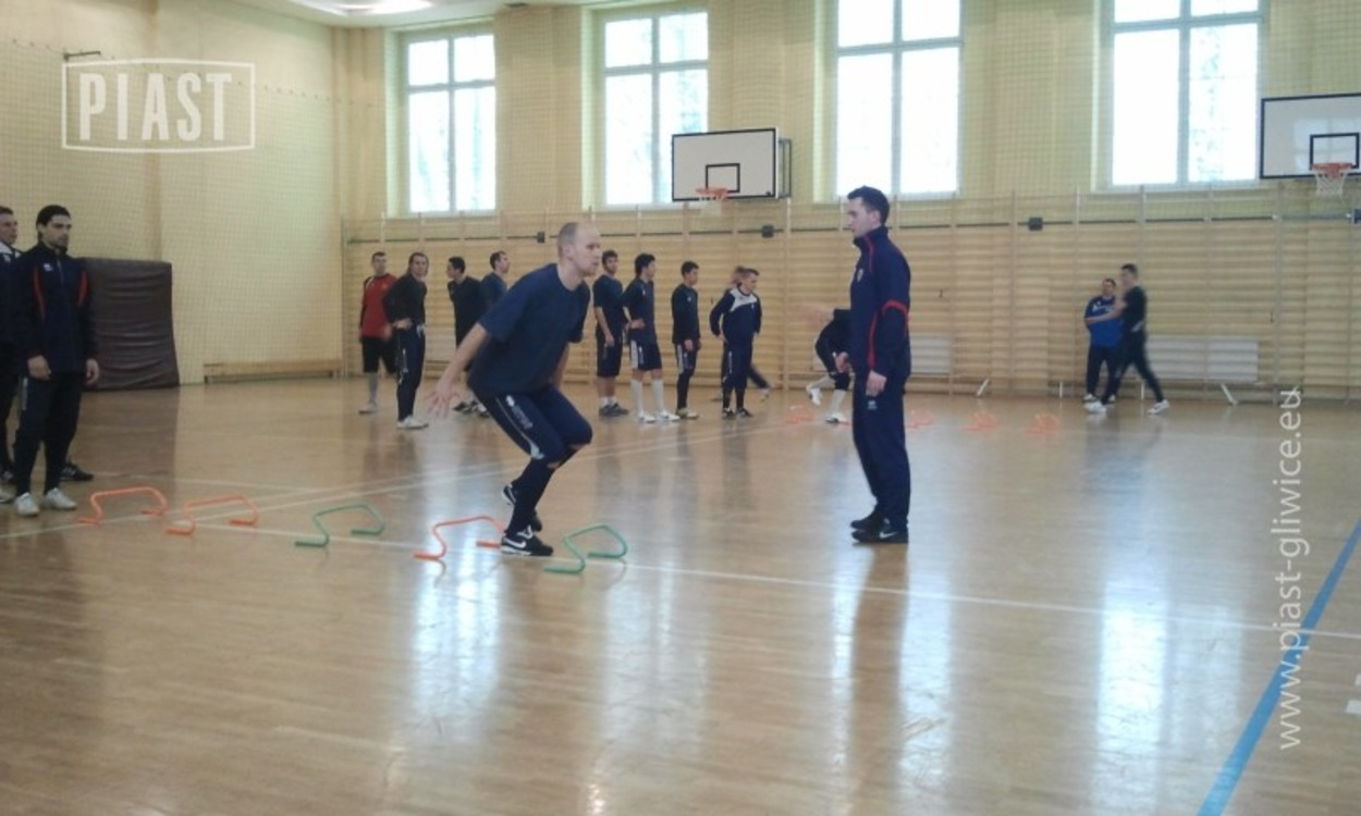 Trwa drugi tydzien przygotowań Piasta do rundy wiosennej. We wtorek, zawodnicy nie trenowali na otwartym boisku, zajęcia przeniosły się na halę. Po 20-minutowej rozgrzewce i ćwiczeniach ruchowych piłkarze skupili się na elementach dynamiki i koordynacji. Doskonalono technikę ruchu, lądowania i zmiany kierunku biegu - wszystko pod opieką i według zaleceń specjalistów z Fizjofitu.
