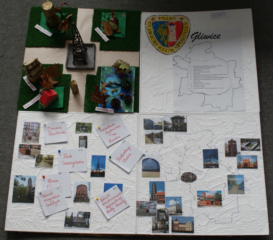 Wszystkim uczestnikom dziękujemy za przesłanie oryginalnych projektów i gratulujemy pomysłowości. Bezapelacyjnym zwycięzcą konkursu została Szkoła Podstawowa nr 1 i przyznaliśmy jej I i II miejsce. Uczniowie SP 1 w ramach naszej zabawy przygotowali specjalną wystawę poświęconą Gliwicom, a jej efekty możecie zobaczyć na zamieszczonych zdjęciach. Na podium znalazła się także praca Anny Sroki, która w swojej trasie wycieczki w nieszablonowy sposób zaznaczyła obiekty sportowe kojarzone z Piastem  i miejsca o wyjątkowym walorze historycznym.