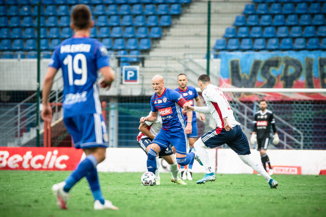 Skrót spotkania 29. kolejki PKO Ekstraklasy, w którym Piast Gliwice bezbramkowo zremisował z zabrzańskim Górnikiem 0-0. Spotkanie odbyło się na Stadionie Miejskim im. Piotra Wieczorka w Gliwicach.