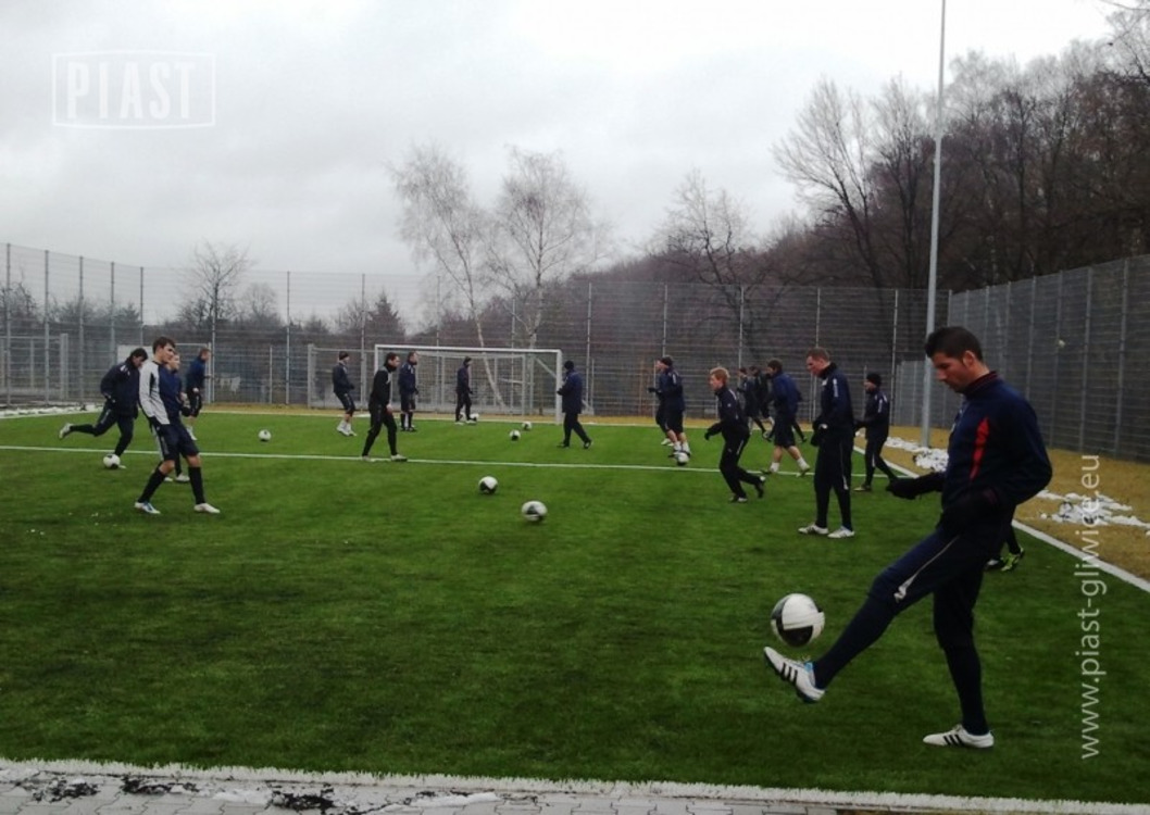 Okres przygotowawczy rozpoczął się dla Piasta w poniedziałek i do pierwszego spotkania rundy wiosennej z Pogonią Szczecin nasza drużyna będzie trenować na maksymalnych obrotach. Pod czujnym okiem Remigiusza Rzepki, niebiesko-czerwoni przeszli dziś testy szybkościowo-skocznościowe. Kiedy część zawodników była poddawana testom, pozostali trenowali na sztucznej murawie. Zajęcia poświęcono oswojeniu się piłkarzy z piłką, ćwiczono główne w parach - przede wszystkim celność i różne warianty podań.