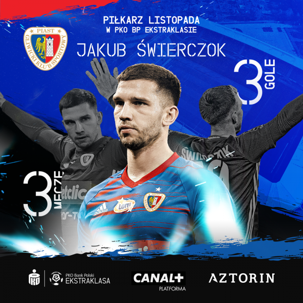 Jakub Świerczok jako jedyny zawodnik wpisywał się na listę strzelców w każdej z trzech listopadowych kolejek. Napastnik Niebiesko-Czerwonych trafił do siatki również w pierwszym grudniowym spotkaniu, przedłużając serię meczów ze zdobyczą bramkową. Piast zdobył w listopadzie siedem punktów, co pozwoliło podopiecznym Waldemara Fornalika opuścić ostatnie miejsce w ligowej tabeli, a także zmniejszyć dystans do zespołów plasujących się wyżej. Stało się to także dzięki bramkom Jakuba Świerczoka, który w minionym miesiącu pokonał bramkarza Górnika Zabrze, Lechii Gdańsk oraz Legii Warszawa.