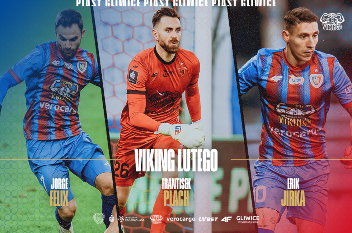 Jorge Felix, Frantisek Plach lub Erik Jirka- jeden z nich zgarnie nagrodę VIKINGA LUTEGO, czyli tytuł najlepszego zawodnika Piasta Gliwice w minionym miesiącu. Fundatorem statuetki jest Kuchnia Vikinga.