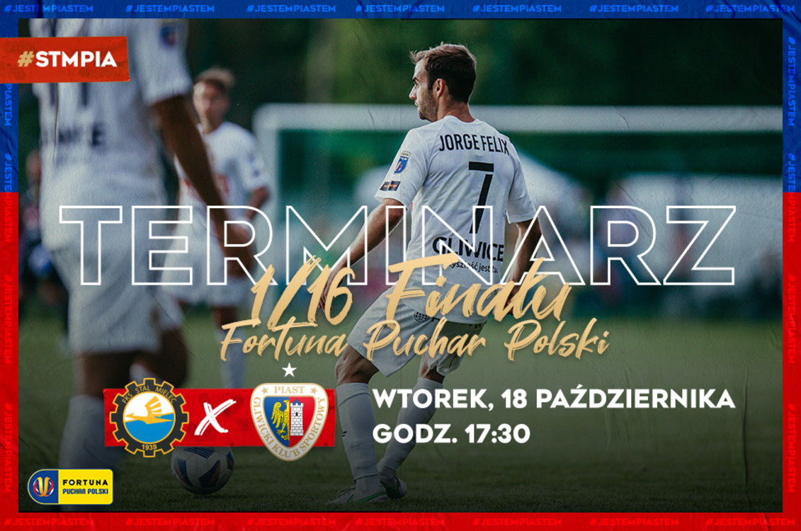 Poznaliśmy termin i godzinę rywalizacji, której stawką będzie awans do 1/8 finału Fortuna Pucharu Polski. Pierwszy gwizdek sędziego w meczu Stal - Piast zabrzmi we wtorek 18 października o godzinie 17:30.