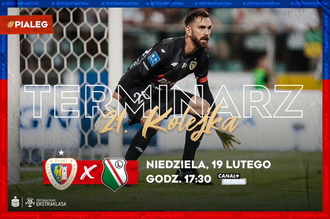 Departament Logistyki Rozgrywek wyznaczył szczegółowe daty spotkań 21. kolejki PKO Bank Polski Ekstraklasy. Mecz Piasta Gliwice z Legią Warszawa odbędzie się w niedzielę, 19 lutego o godzinie 17:30.