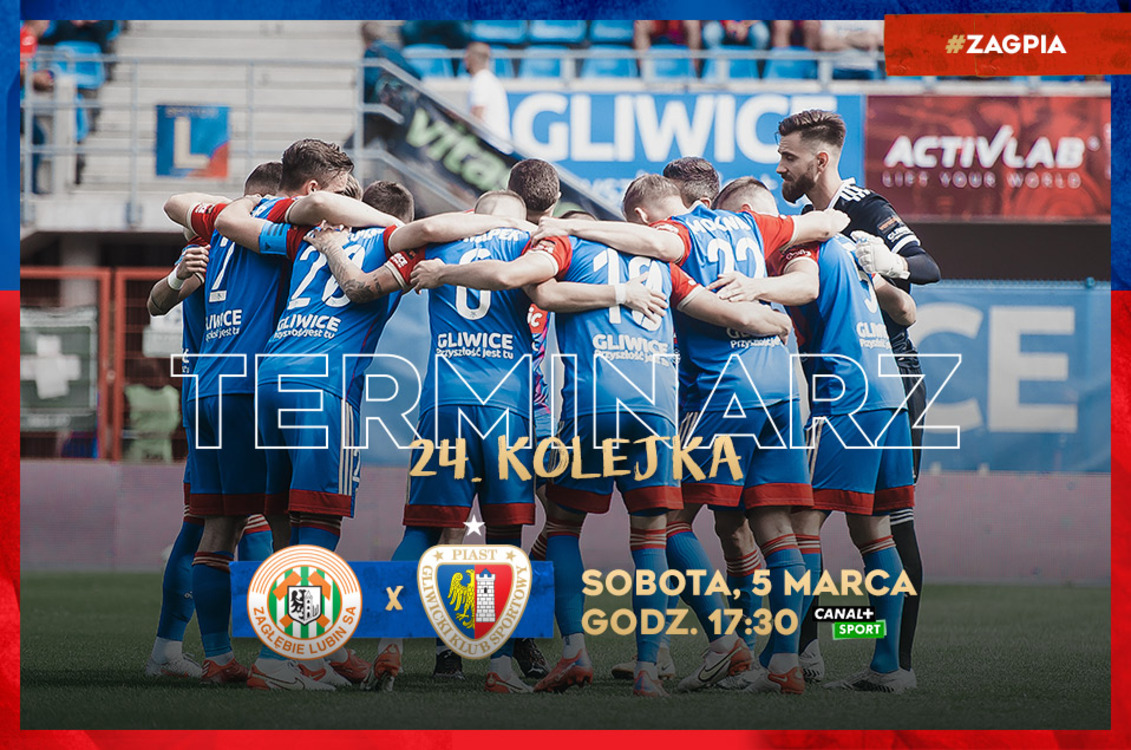 Poznaliśmy szczegółowy terminarz 24. kolejki PKO Bank Polski Ekstraklasy. Piast Gliwice zmierzy się z Zagłębiem Lubin, które wygrało tylko jedno z ostatnich pięciu spotkań na własnym stadionie. Mecz został zaplanowany na sobotę, 5 marca o godzinie 17:30.