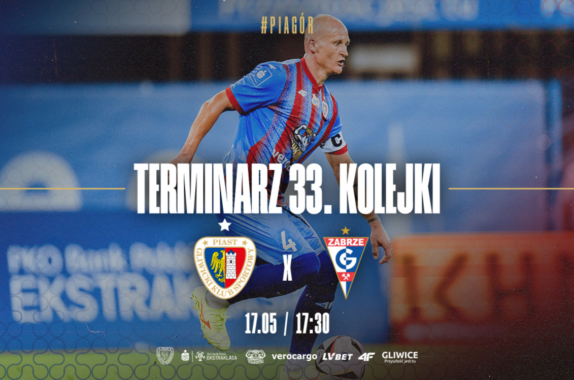 Znamy już wszystkie szczegółowe terminy meczów Niebiesko-Czerwonych do końca sezonu! Departament Logistyki Rozgrywek przedstawił terminarz 33. serii gier, w której Piast Gliwice zagra ostatnie spotkanie w sezonie na #Okrzei20. Rywalem podopiecznych Aleksandara Vukovicia będzie Górnik Zabrze. Pierwszy gwizdek w tym spotkaniu zabrzmi w sobotę, 17 maja o godzinie 17:30.