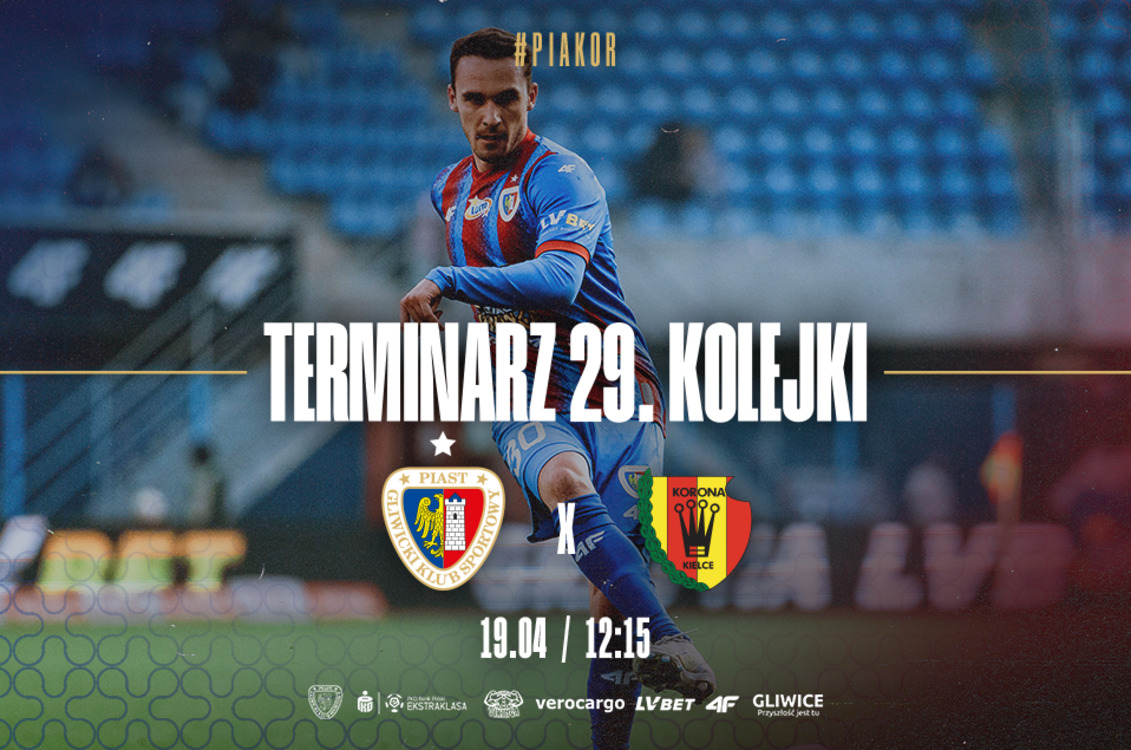 Poznaliśmy szczegółowy terminarz 29. kolejki PKO Bank Polski Ekstraklasy, w której Piast Gliwice podejmie na własnym stadionie Koronę Kielce. Pierwszy gwizdek zabrzmi w sobotę, 19 kwietnia o godzinie 12:15.