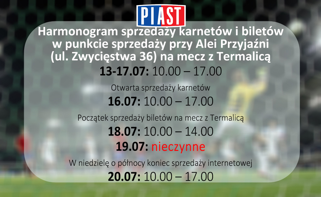 Harmonogram sprzedaży na Termalicę
