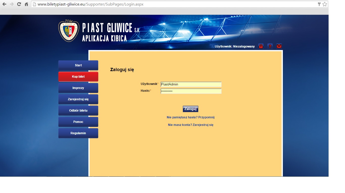 Kibic, który jest zarejestrowany w systemie, a nie posiada karty kibica, może aktywować swoje konto online. Wystarczy udać się do punktu kasowego w czasie trwania sprzedaży biletów po dane do logowania.