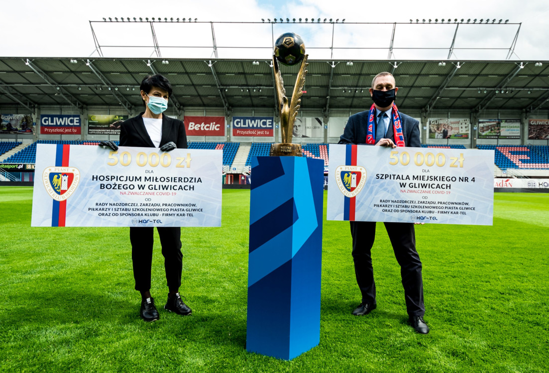 Szpital Miejski nr 4 w Gliwicach oraz Hospicjum Miłosierdzia Bożego w Gliwicach otrzymały po 50 000 zł na walkę ze skutkami wirusa COVID-19. Pieniądze zostały przekazane przez piłkarzy, sztab trenerski, członków rady nadzorczej, zarządu i pracowników Piasta Gliwice oraz sponsora klubu – firmę Kar-Tel.