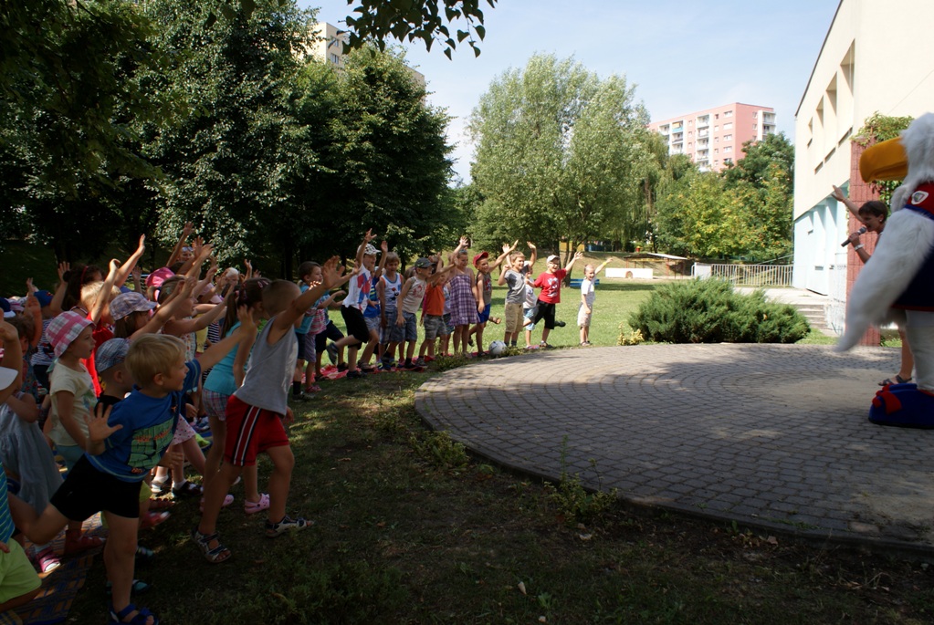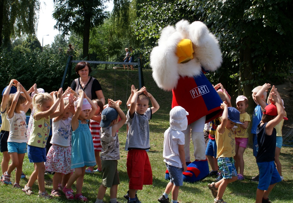Oficjalna maskotka uczestniczyła w zabawach przygotowanych przez dzieci oraz poprowadziła krótką rozgrzewkę przed kolejnymi zabawami.