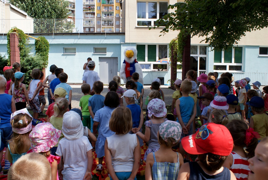 Piastuś z wizytą u najmłodszych kibiców Piasta Gliwice
