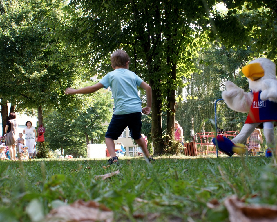 Jedną z przygotowanych konkurencji była możliwość strzelania rzutów karnych, które bronił Piastuś. Strzelenie gola nie było łatwą sprawą, ale wśród przedszkolaków znaleźli się zawodnicy znający się na precyzyjnym  wykonywaniu jedenastki.