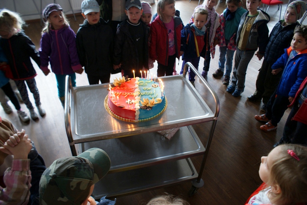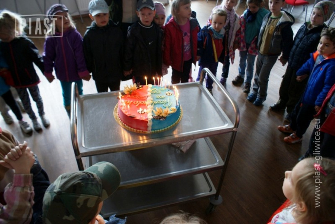 W środę na obiekcie przy ul. Okrzei zjawiła się czterdziestoosobowa grupa maluchów z Wilczego Gardła. Było to już dwudzieste spotkanie w ramach akcji „Przedszkolaki na Okrzei” Z tej okazji na naszych gości czekała niespodzianka w postaci pysznego niebiesko-czerwonego tortu.