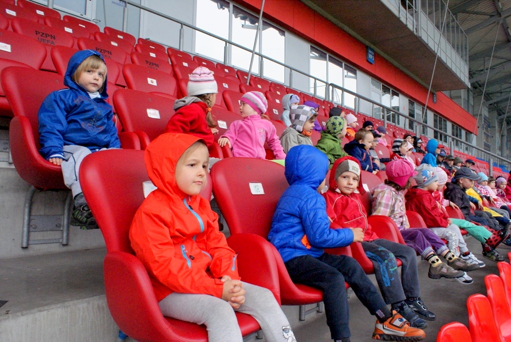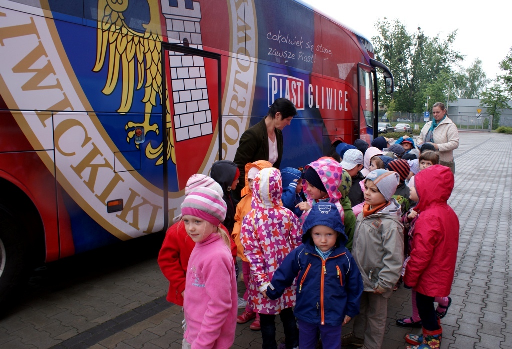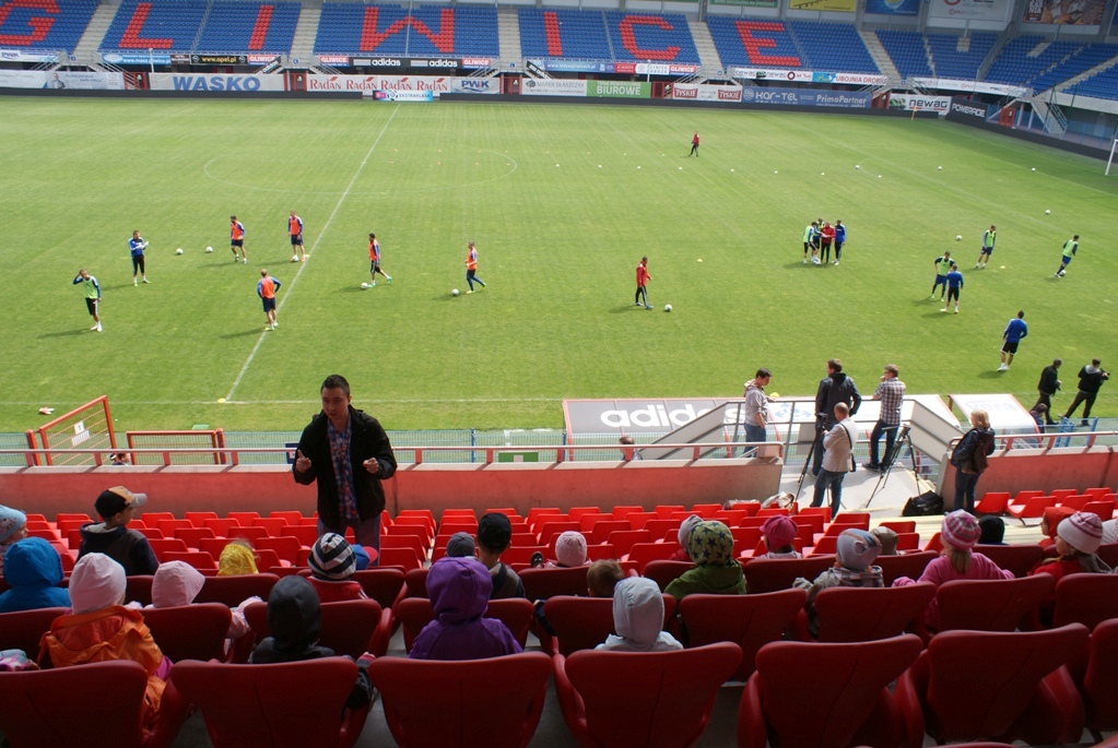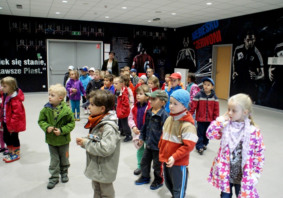 W trakcie zwiedzania dzieci zobaczyły kilka klubowych pomieszczeń niedostępnych na co dzień dla kibiców: m.in. szatnię i siłownię. O godz. 11.00 na murawę stadionu wybiegli zawodnicy Piasta, których przedszkolaki przywitały brawami i głośnymi okrzykami. Pod sporym wrażeniem ich zachowania był nowy szkoleniowiec I zespołu, który podziękował za miłe przyjęcie.