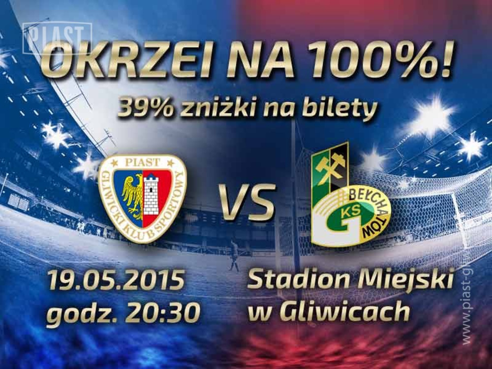 We wtorek - 19 maja - o 20:30 Piast Gliwice zmierzy się przy Okrzei z GKS-em Bełchatów. Sprzedaż biletów na ten mecz ruszy 15 maja.